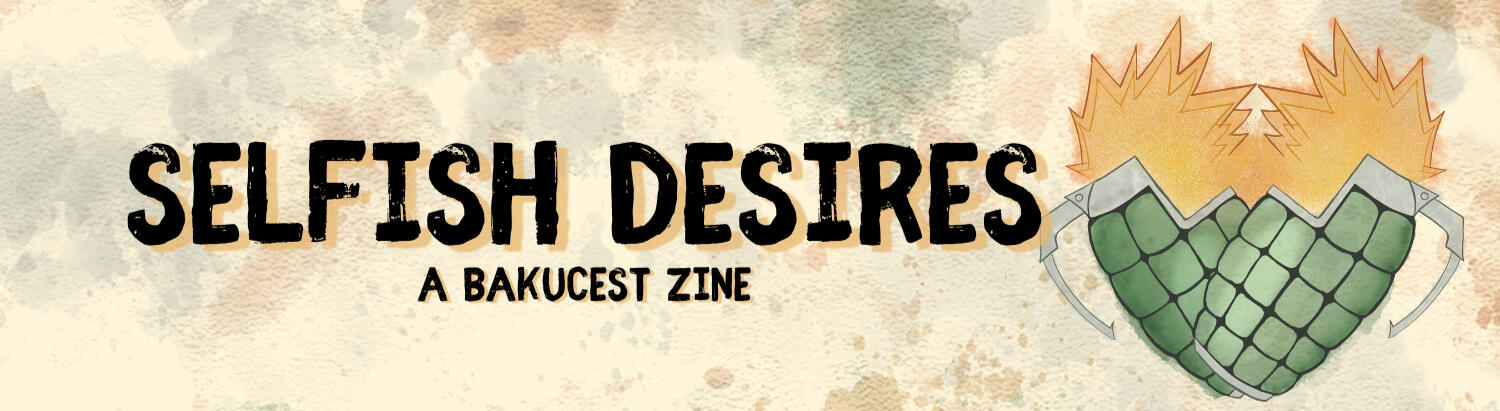 Selfish Desires is an NSFW zine about Bakugou Selfcest aka Bakucest! This zine will be divided into two sections: NSFW and Problematic.The zine will be a free digital-only PDF and open to the public for contributors with invited guests.